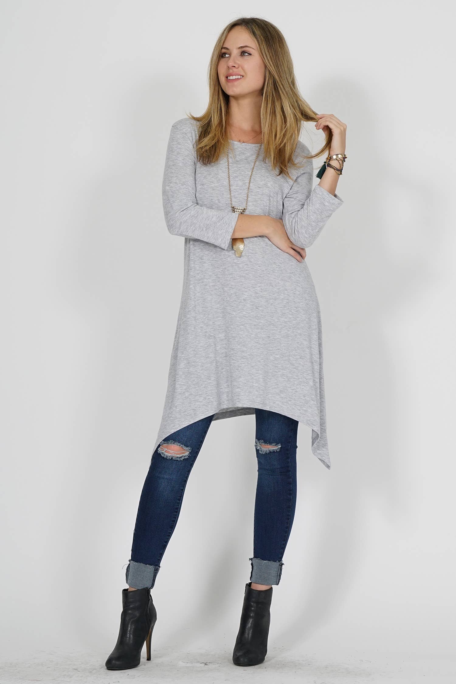 Get more mix-and-match power from your wardrobe with this solid-hued tunic finished with swingy sidetails