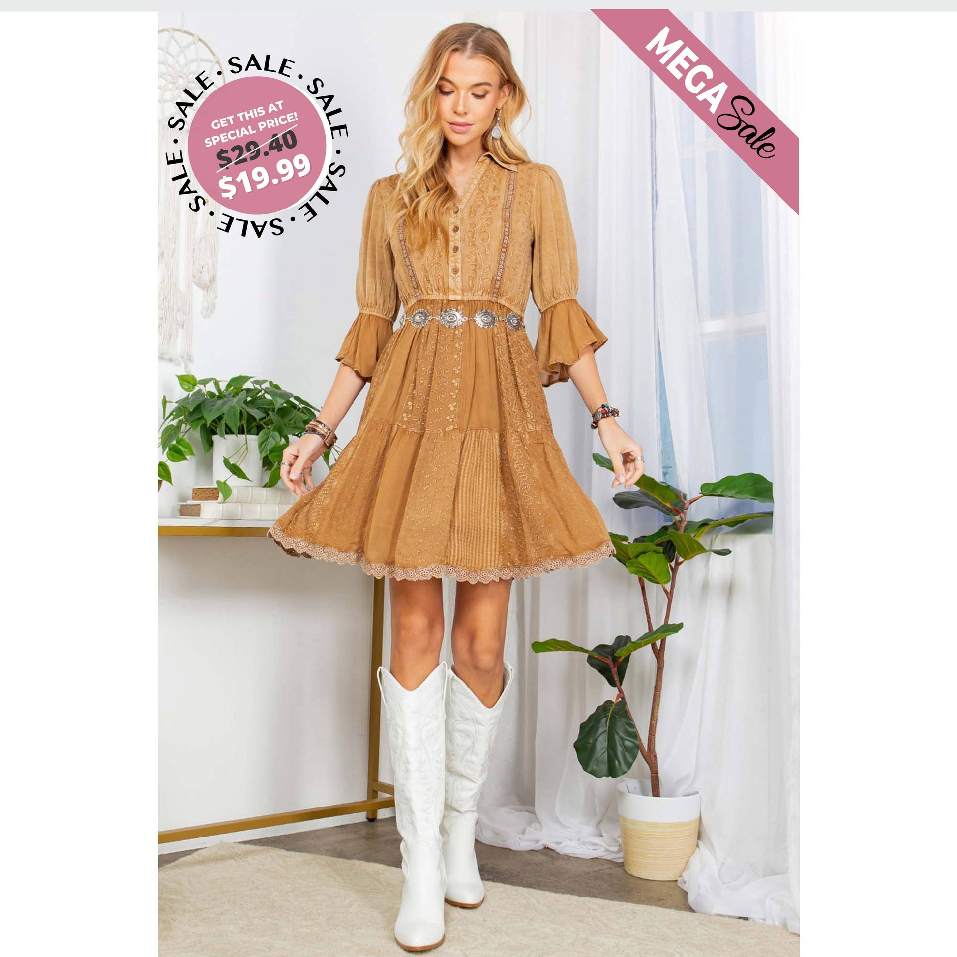Young Threads Tiered Lace Detailing Dress Boho Babe (XS-S-M)